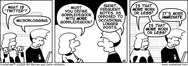 Okay. So I finally gave in to peer pressure, and started a Twitter account this past Thursday.