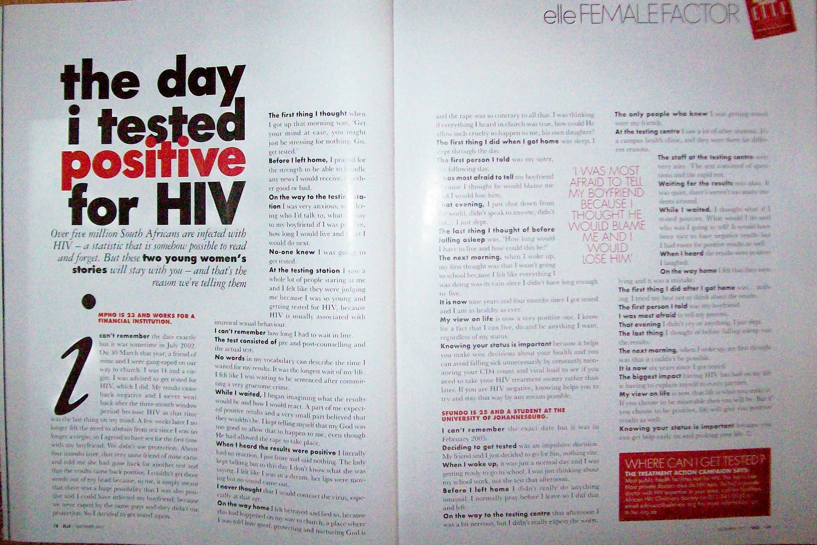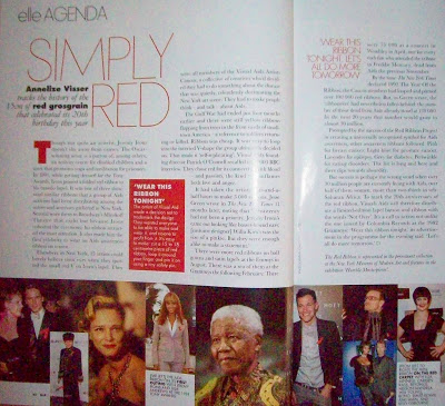 I always love reading the articles, because they’re so well-thought out and quirky. They usually chronicle the mishaps of a fashion slave, or the tragic social faux pas of a would-be socialite. There is also always a considerable mention of the more important things in life, this time the focus was on AIDS awareness- stories from real survivors of the HI-Virus, as well as an interesting history lesson on the origins of the symbolic red ribbon.