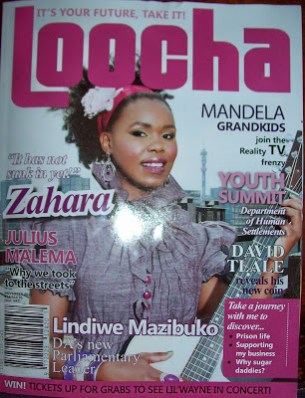 While all this is commendable, I don’t think I’m going to be buying Loocha again, unless something on the cover really catches my eye. In Decemeber, it was Zahara- luckily that article was one of the better-written ones.