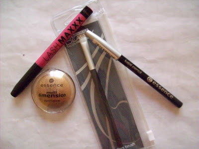 | Essence eyeshadow, eyeliner and shading brush (Clicks); Revlon cream eyeliner/shadow combination pen. (Mascara not shown). |