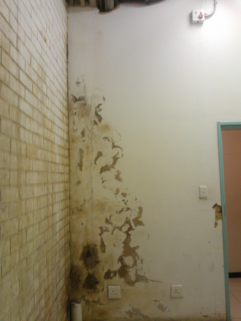 The walls and the lone cupboard in this place are in a terrible state, but at least the machines are in working condition. And they come complete with notices and instructions for use for the tenants.