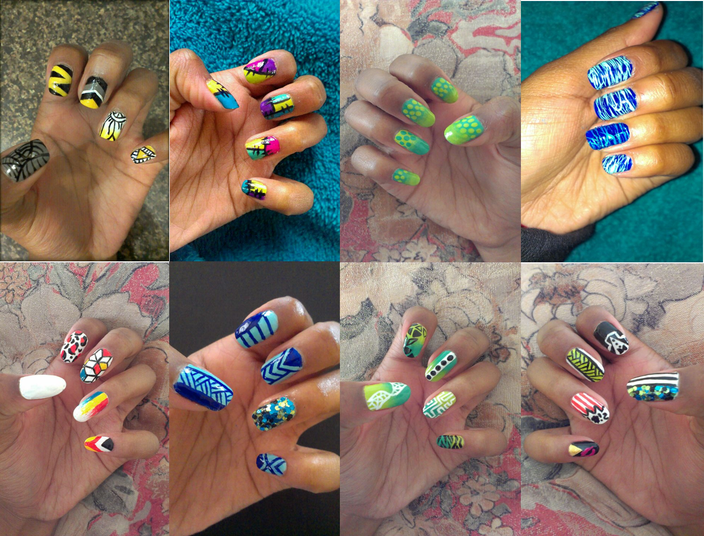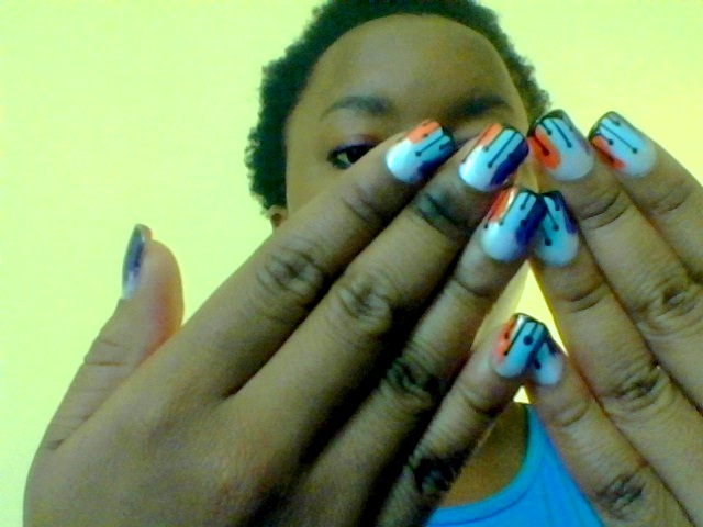 I got coral, light blue and purple with a black accent dripping down from the tip. Some of the other designs that Tshego does look like this: