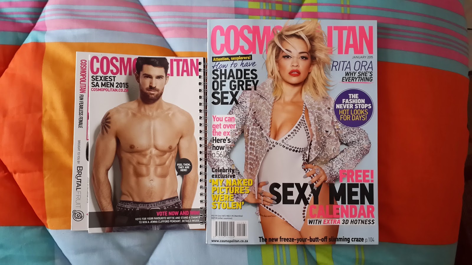 It just never looked like there was any real reading to be done in Cosmo – only scandalous how-to diagrams and pictures of shirtless men. This time, my curiosity got the better of me and I bought the January issue, which is also the “Sexiest Men in SA” calendar issue. This issue is probably Cosmo’s most popular one of the year, and I have been interested in a detached way in the past – but never enough to actually buy into it – until today.