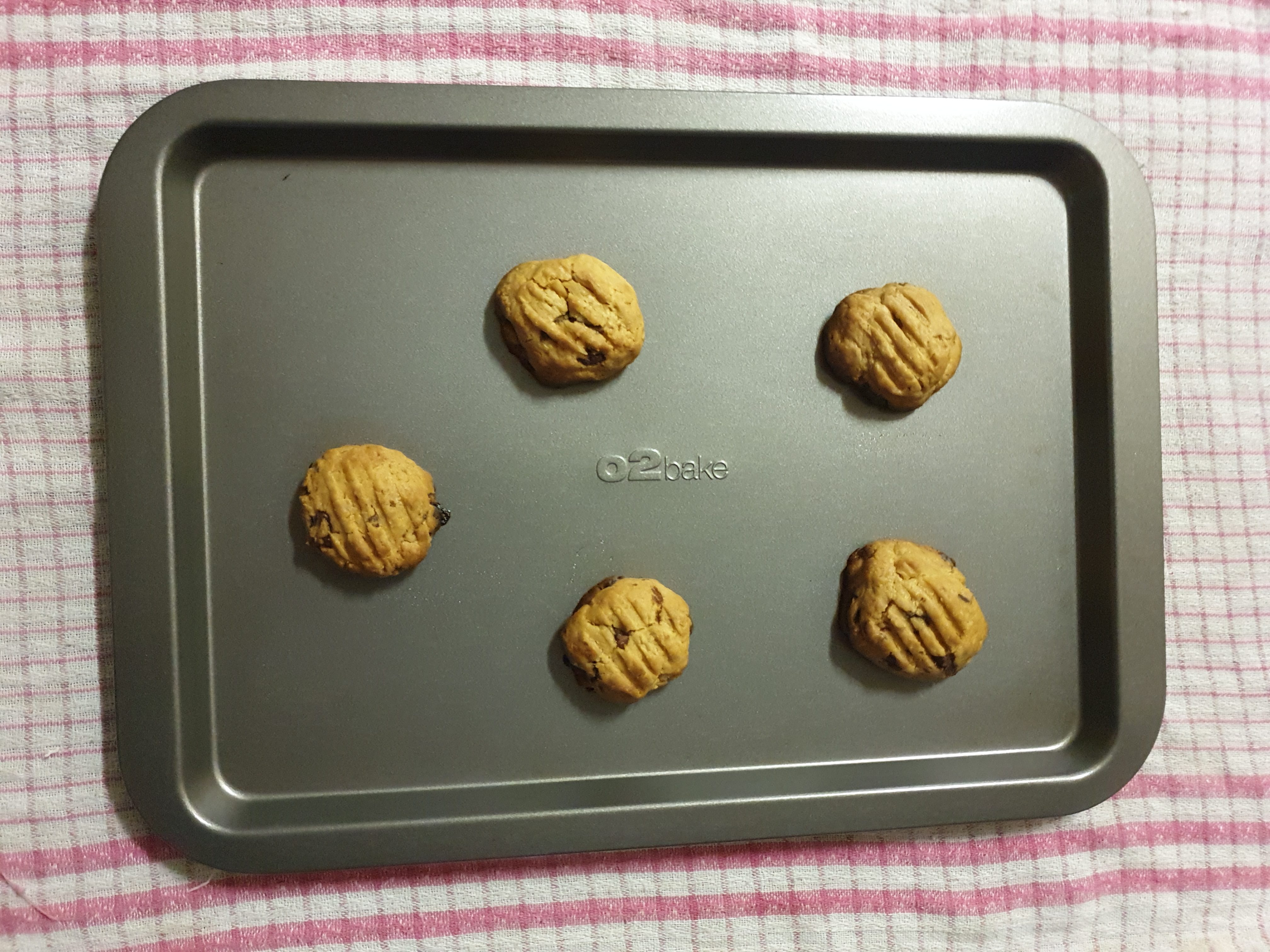 When you are ready to bake, preheat the oven to 180 degrees. Using a soup spoon, scoop out small quantities of the dough and mould them into balls. Lay them on a greased baking tray, leaving enough space between each cookie for spreading. This is very important if you don’t plan on baking one large, flat biscuit.